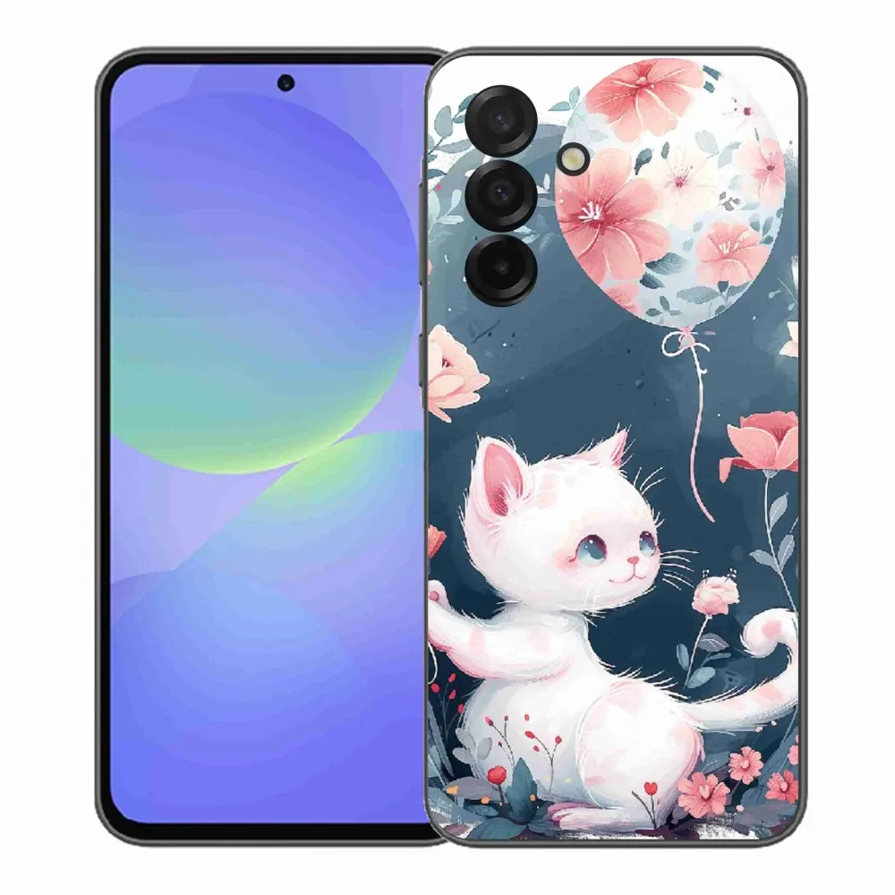 Pružný gélový obal mmCase s obrázkom na Samsung Galaxy A37 5G - mačiatko s balónikom