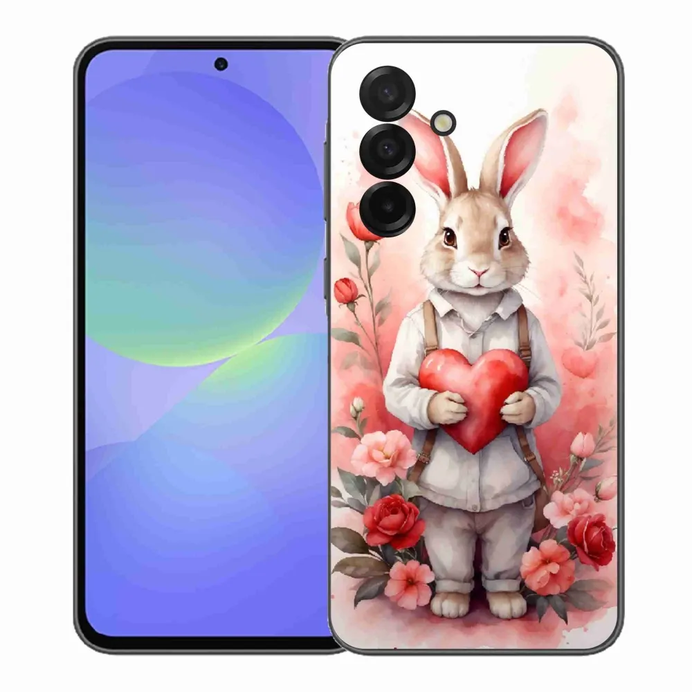 Pružný gélový obal mmCase s obrázkom na Samsung Galaxy A37 5G - zajac so srdiečkom