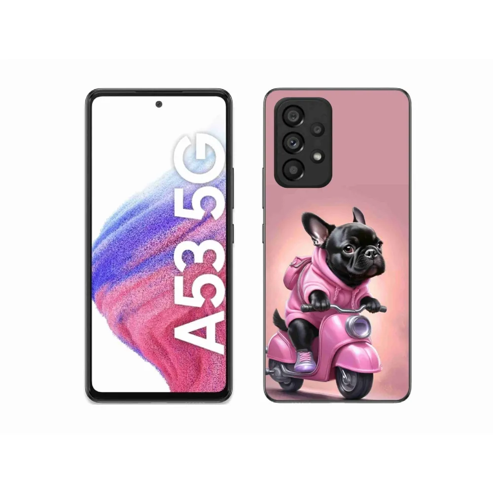 Pružný gélový obal mmCase s obrázkom na Samsung Galaxy A53 - francúzsky buldoček na skútri