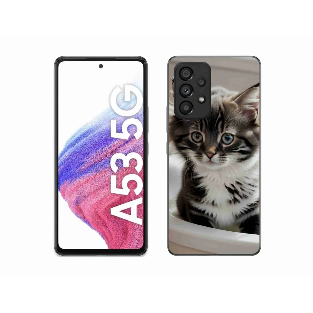 Pružný gélový obal mmCase s obrázkom na Samsung Galaxy A53 - zvedavé mačiatko