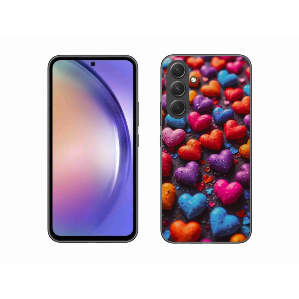 Puzdro na Samsung Galaxy A54 5G - farebné srdcia poskytuje všetky výhody gélových obalov, a to v zaujímavom dizajne.