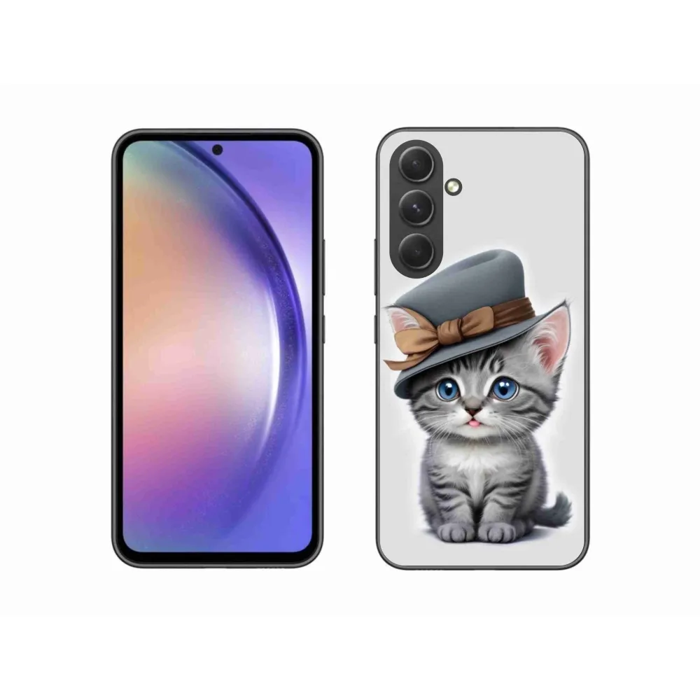 Pružný gélový obal mmCase s obrázkom na Samsung Galaxy A54 5G - mačiatko s klobúkom