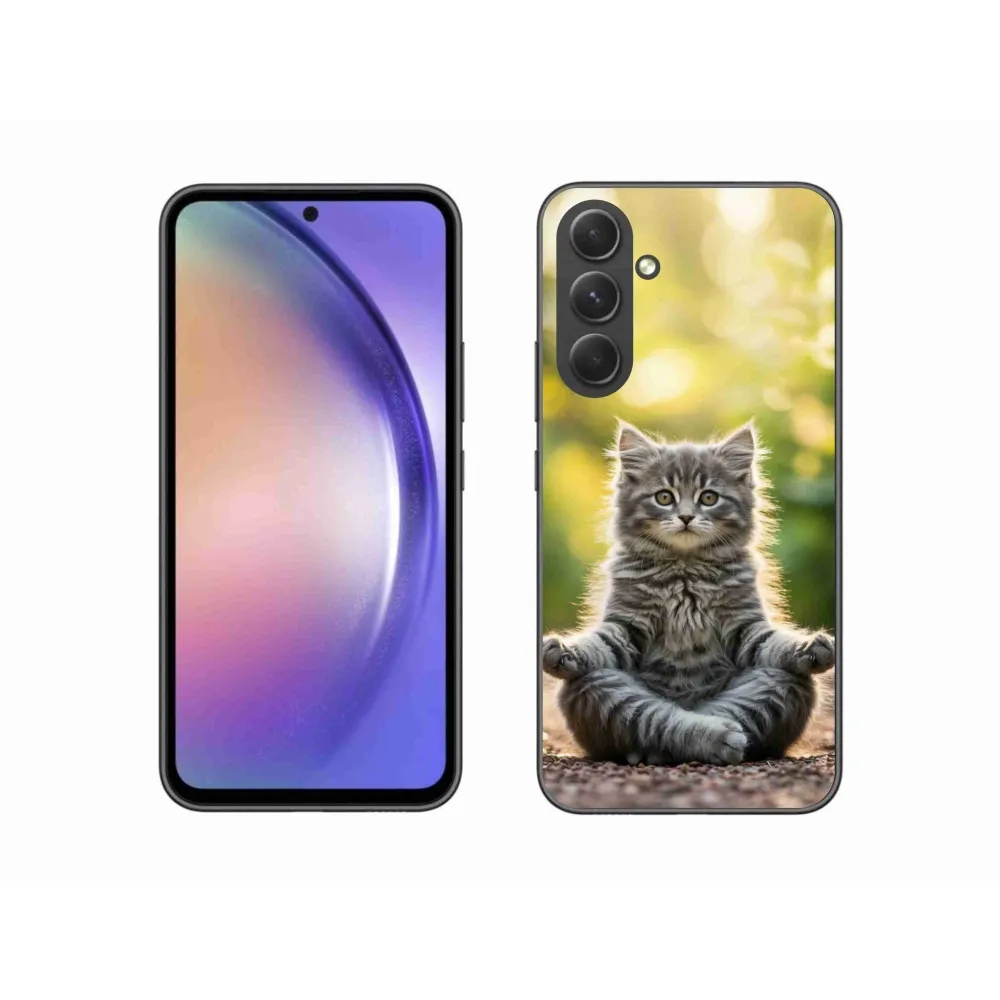 Mačacie púzdro na Samsung Galaxy A54 5G - meditujúce mačiatko poskytuje všetky výhody gélových obalov, a to v zaujímavom dizajne.