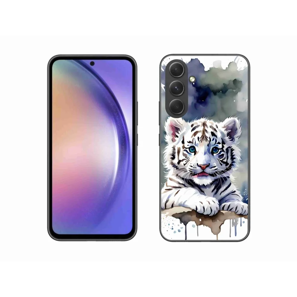 Psie púzdro na Samsung Galaxy A54 5G - mláďa bieleho tigra poskytuje všetky výhody gélových obalov, a to v zaujímavom dizajne.