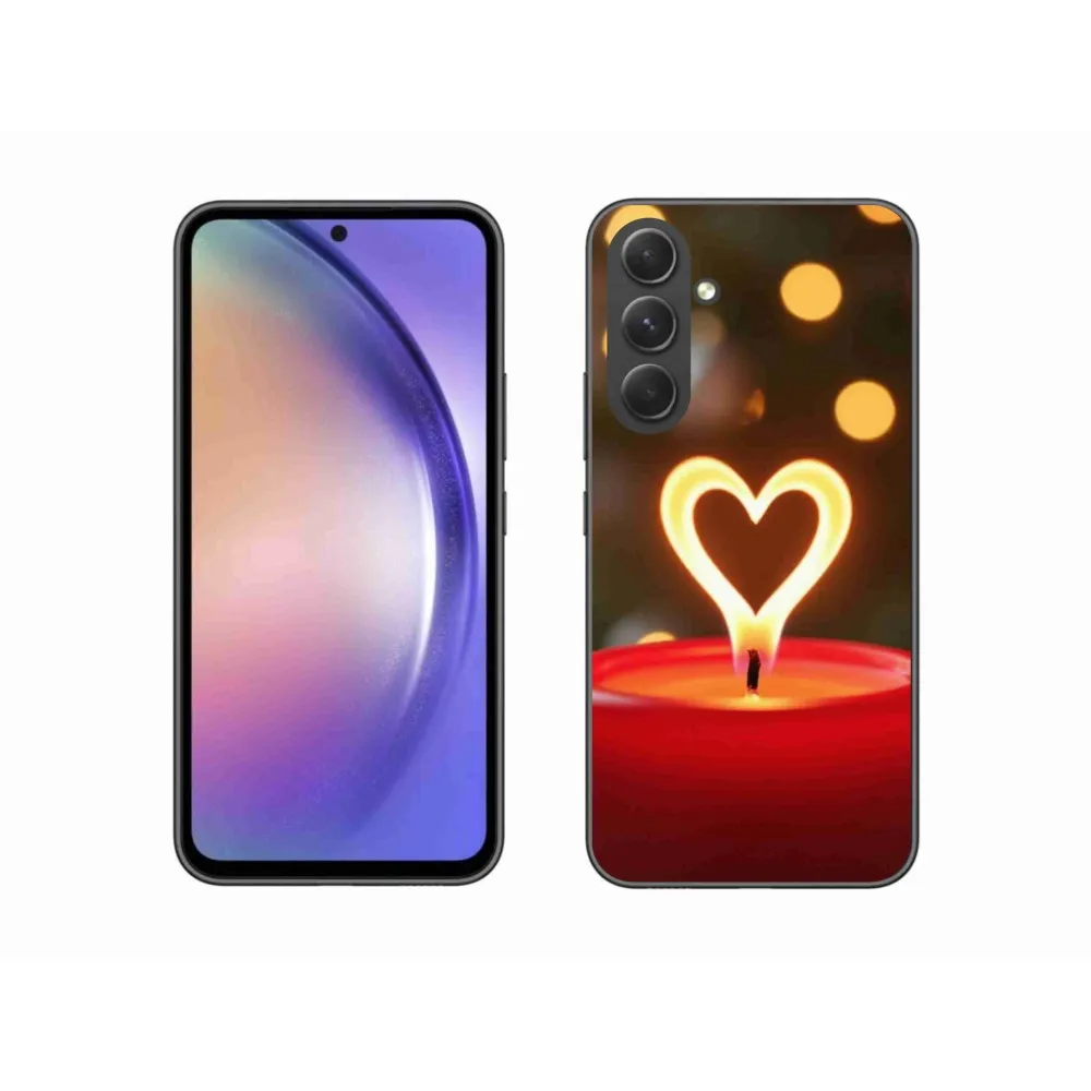 Vianočné puzdro na Samsung Galaxy A54 5G - srdce z plameňa poskytuje všetky výhody gélových obalov, a to v zaujímavom dizajne.