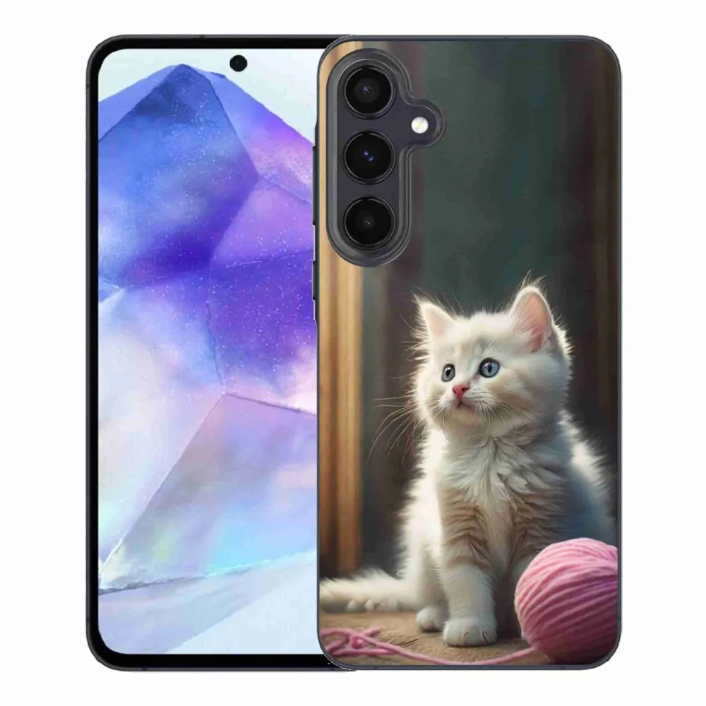 Pružný gélový obal mmCase s obrázkom na Samsung Galaxy A55 5G - biele mačiatko 2