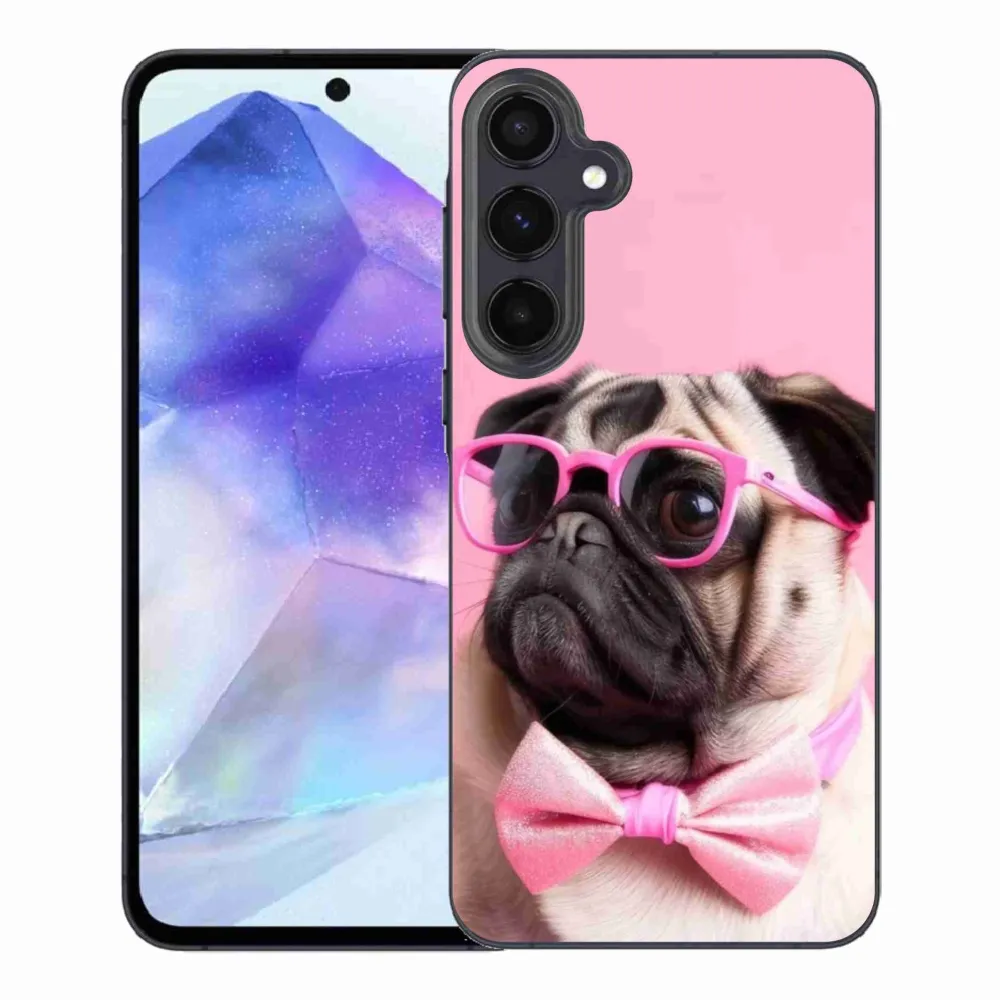 Psie púzdro na Samsung Galaxy A55 5G - štýlový mops poskytuje všetky výhody gélových obalov, a to v zaujímavom dizajne.