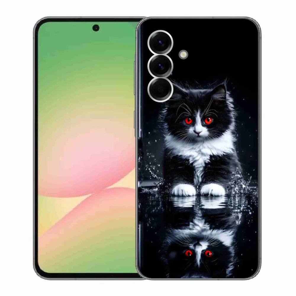 Pružný gélový obal mmCase s obrázkom na Samsung Galaxy A56 5G - čiernobiele mačiatko