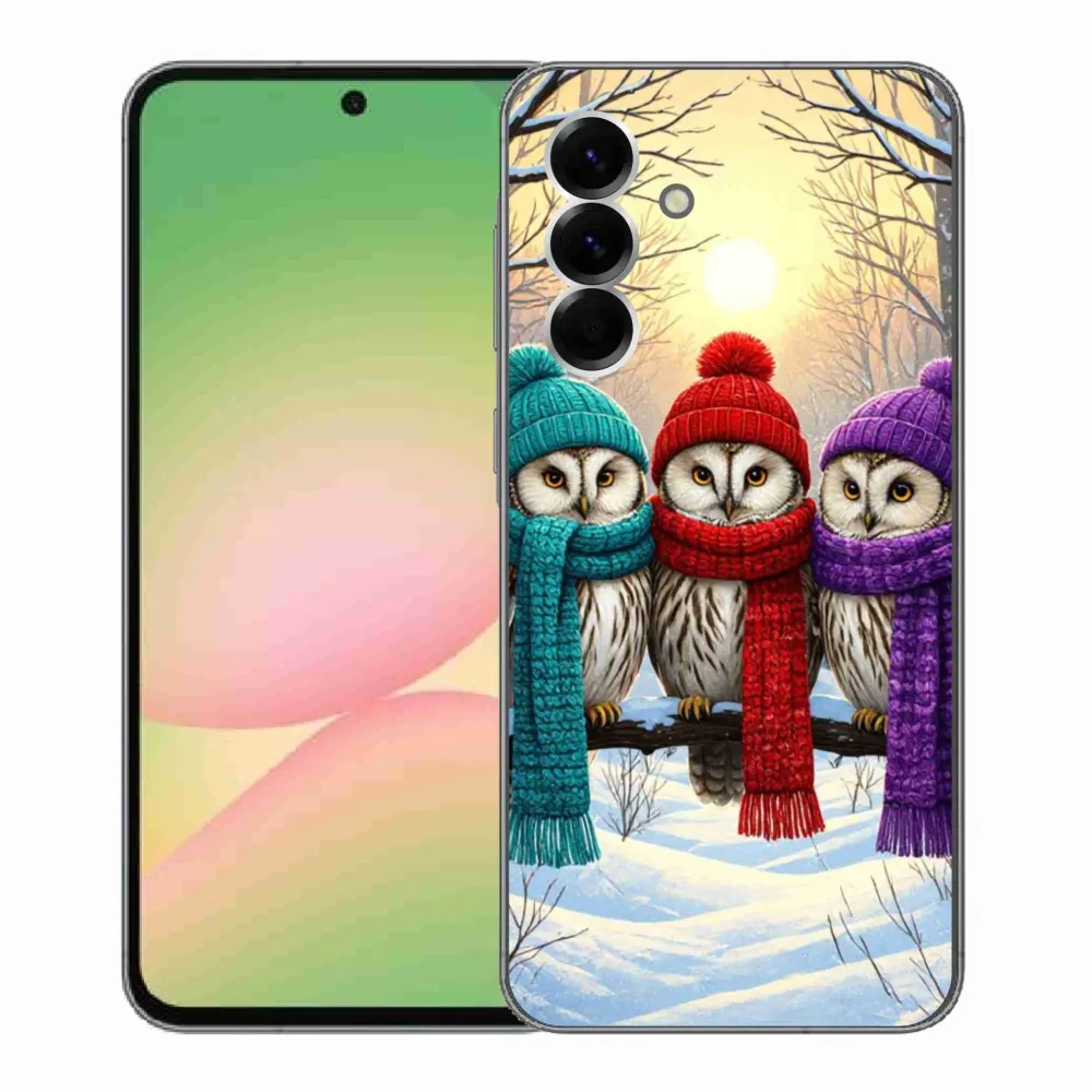 Vianočné puzdro na Samsung Galaxy A56 5G - soví priatelia poskytuje všetky výhody gélových obalov, a to v zaujímavom dizajne.