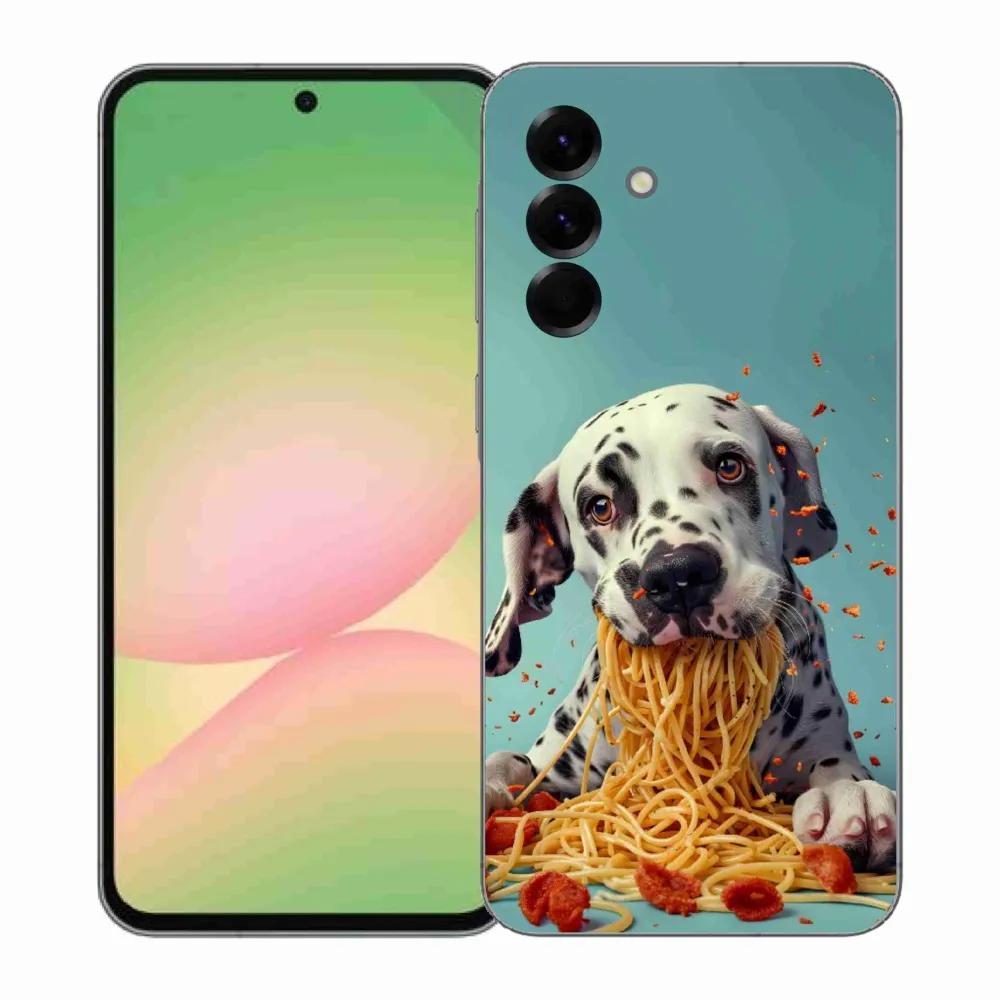 Pružný glový obal mmCase s obrázkom na Samsung Galaxy A57 5G - dalmatín a špagety