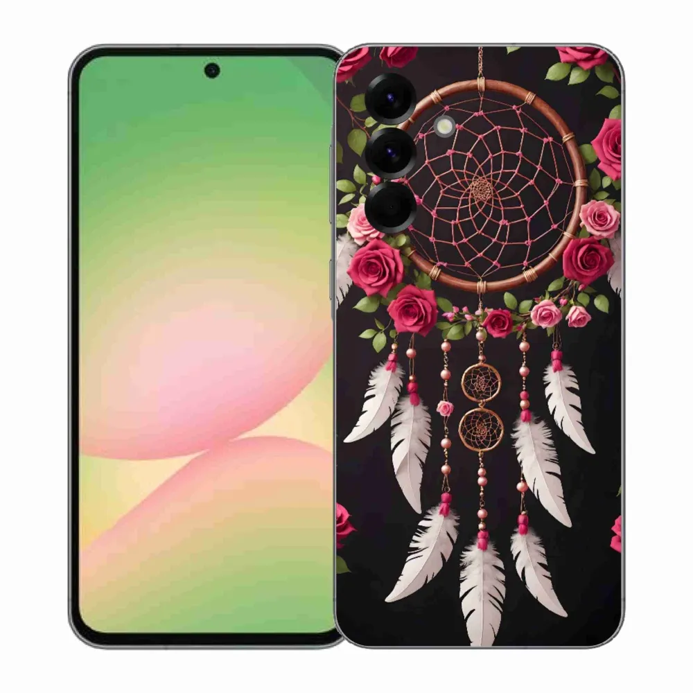 Púzdro s motívom lapače snov s ružami na Samsung Galaxy A57 5G poskytuje všetky výhody gélových obalov, a to v zaujímavom dizajne.