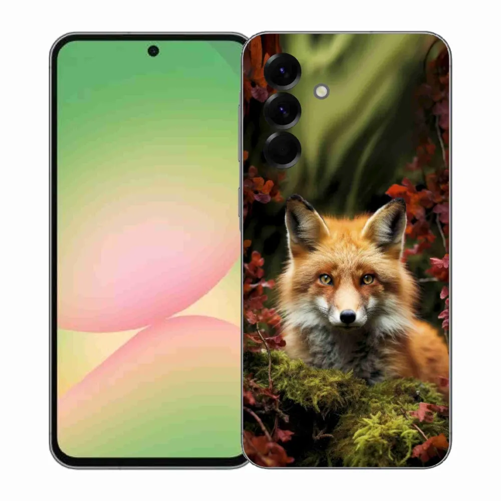 Zvieracie púzdro na Samsung Galaxy A57 5G - líška v lese poskytuje všetky výhody gélových obalov, a to v zaujímavom dizajne.