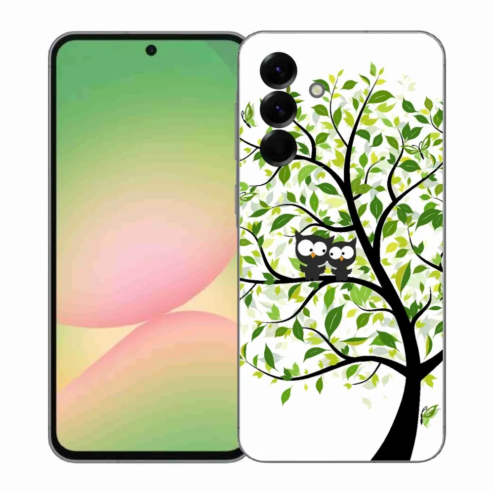 Zvieracie púzdro na Samsung Galaxy A57 5G - malej sovy na strome poskytuje všetky výhody gélových obalov, a to v zaujímavom dizajne.