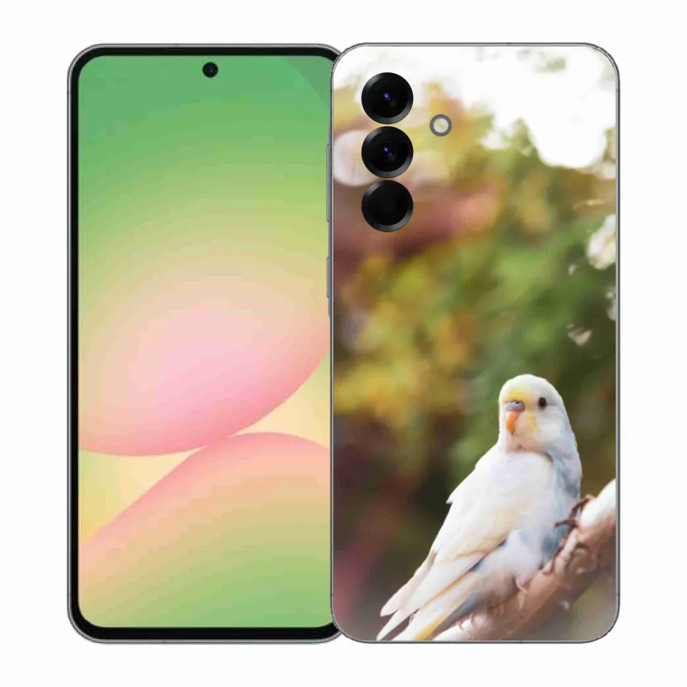 Zvieracie puzdro na Samsung Galaxy A57 5G - papagáj andulka biela poskytuje všetky výhody gélových krytov, a to v zaujímavom dizajne.