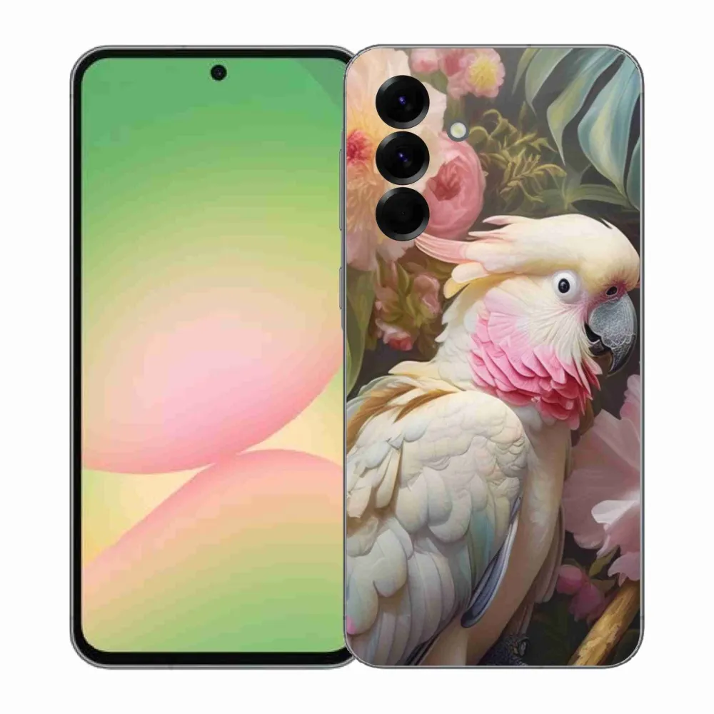 Pružný gélový obal mmCase s obrázkom na Samsung Galaxy A57 5G - papagáj kakadu ružový 2