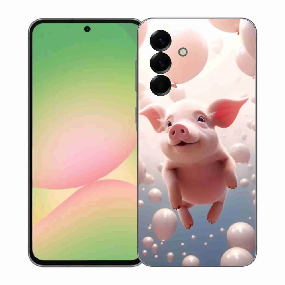 Zvieracie púzdro na Samsung Galaxy A57 5G – prasiatko s balónikmi poskytuje všetky výhody gélových obalov, a to v zaujímavom dizajne.
