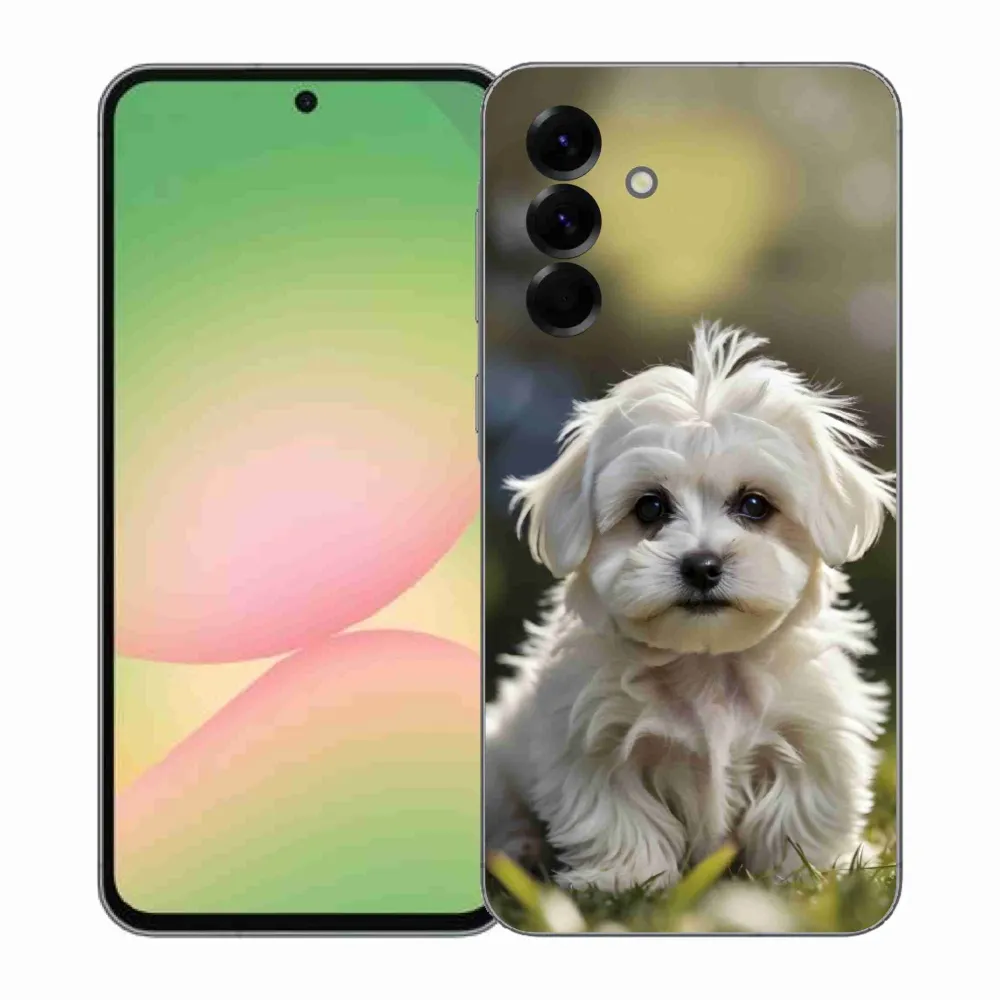 Psie púzdro na Samsung Galaxy A57 5G - roztomilý maltézsky psík poskytuje všetky výhody gélových obalov, a to v zaujímavom dizajne.
