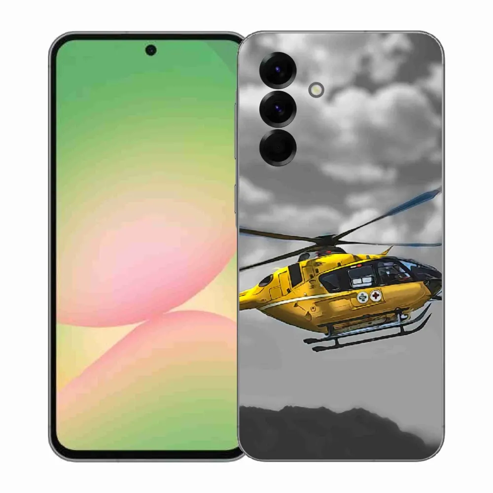 Pružný gélový obal mmCase s obrázkom na Samsung Galaxy A57 5G - žltá helikoptéra