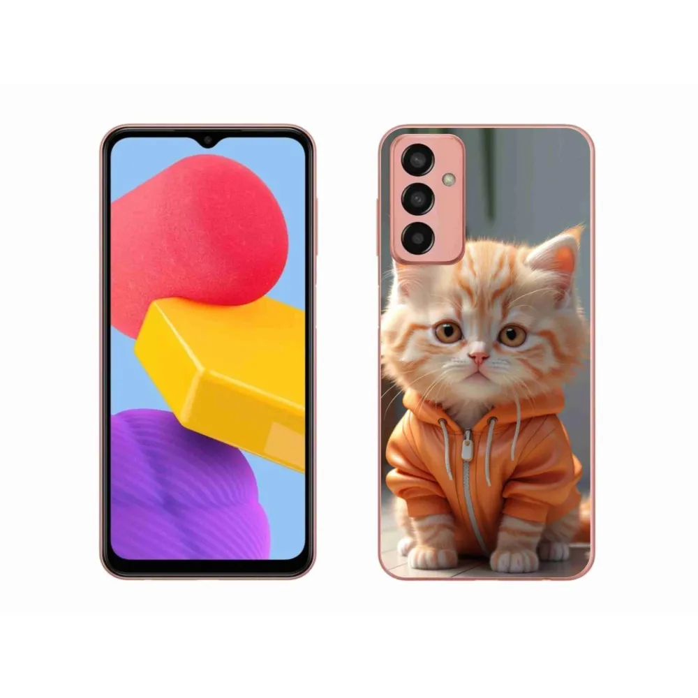 Pružný gélový obal mmCase s obrázkom na Samsung Galaxy M13 - mačiatko v mikine
