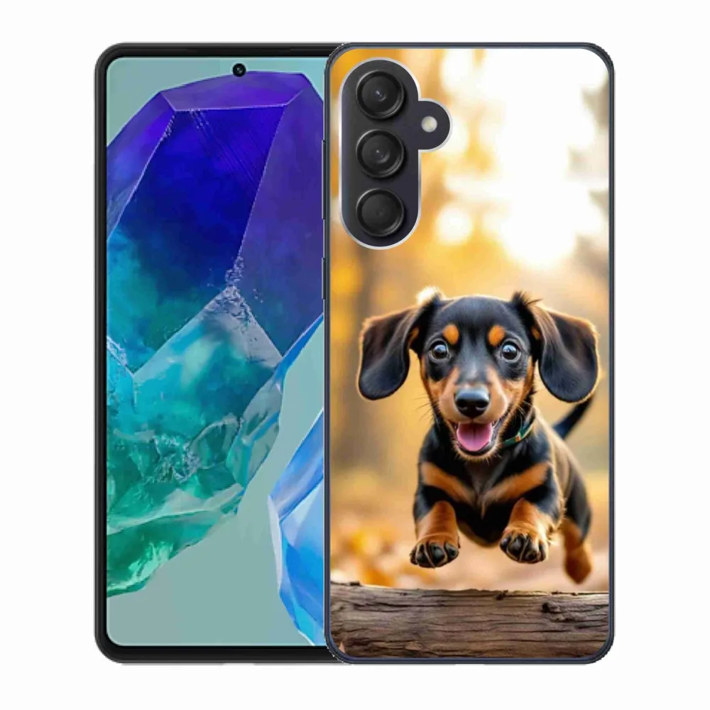 Psie púzdro na Samsung Galaxy M55 5G - jazvečík 2 poskytuje všetky výhody gélových obalov, a to v zaujímavom dizajne.