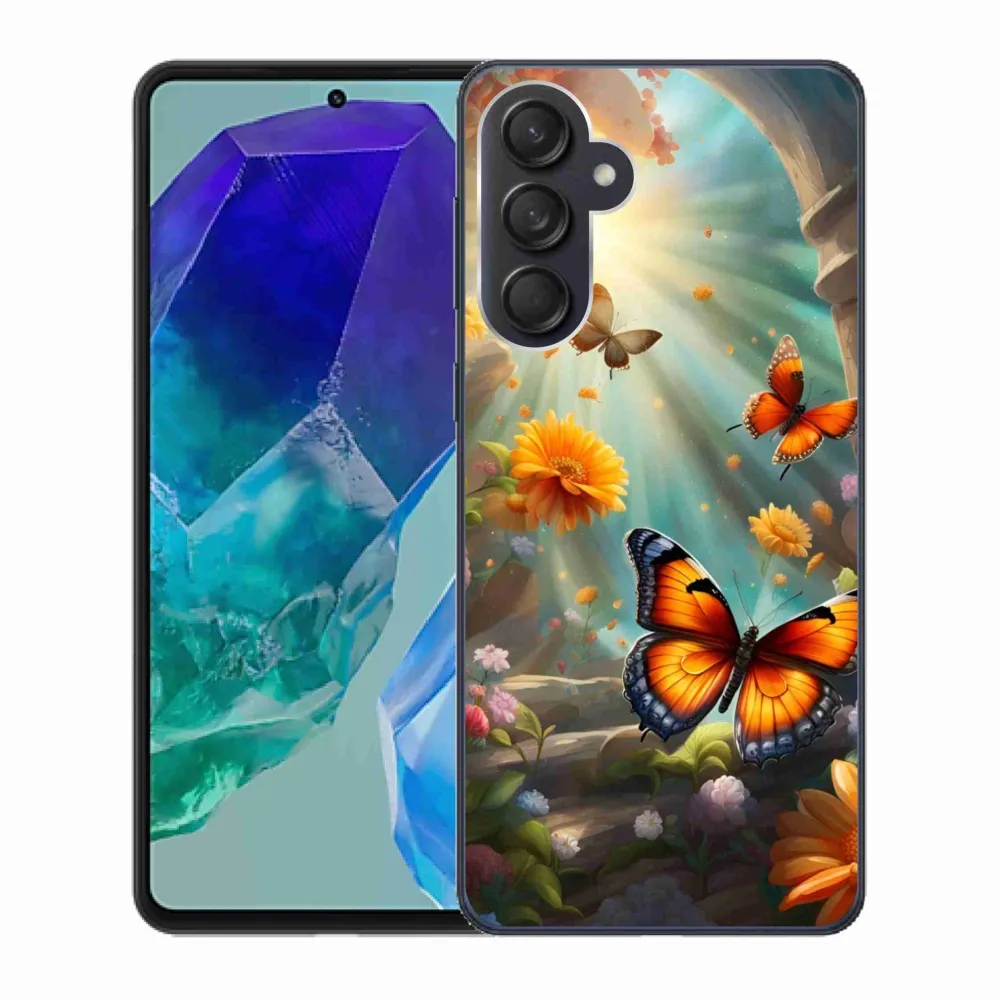 Zvieracie puzdro na Samsung Galaxy M55 5G - motýlia záhrada 2 poskytuje všetky výhody gélových obalov, a to v zaujímavom dizajne.