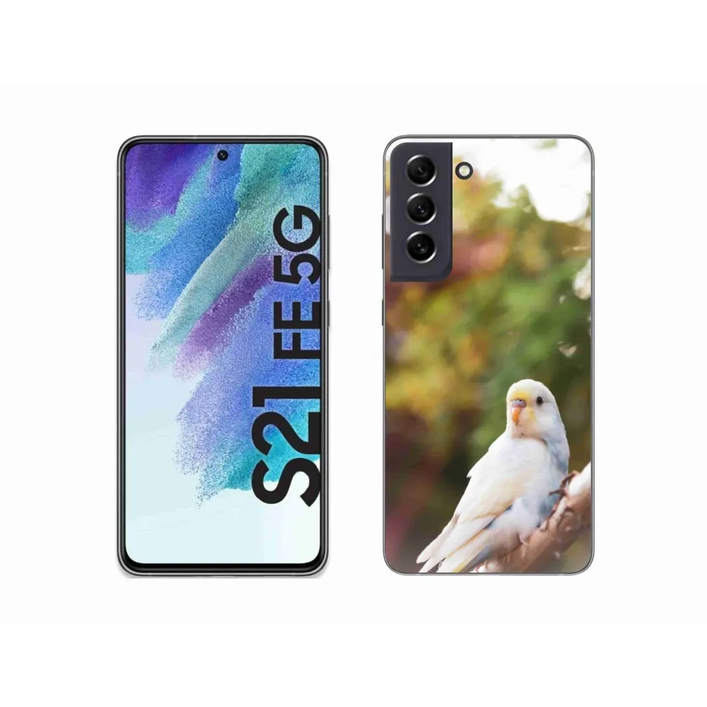 Pružný gélový obal mmCase s obrázkom na Samsung Galaxy S21 FE - papagáj andulka biela