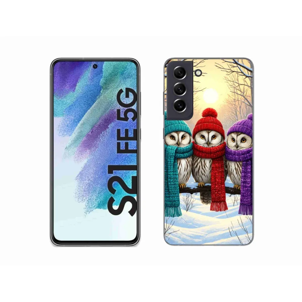 Vianočné puzdro na Samsung Galaxy S21 FE - soví priatelia poskytuje všetky výhody gélových obalov, a to v zaujímavom dizajne.