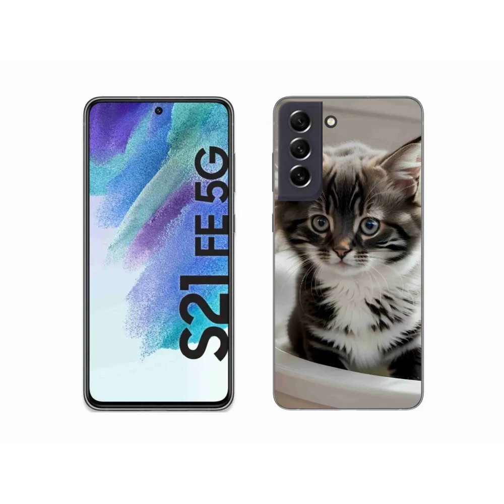 Pružný gélový obal mmCase s obrázkom na Samsung Galaxy S21 FE - zvedavé mačiatko