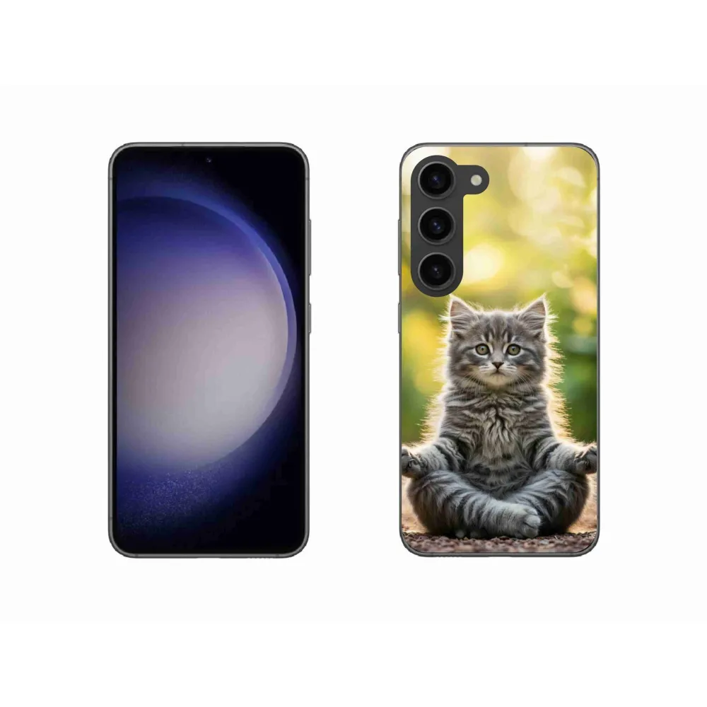 Mačacie púzdro na Samsung Galaxy S23 5G - meditujúce mačiatko poskytuje všetky výhody gélových obalov, a to v zaujímavom dizajne.