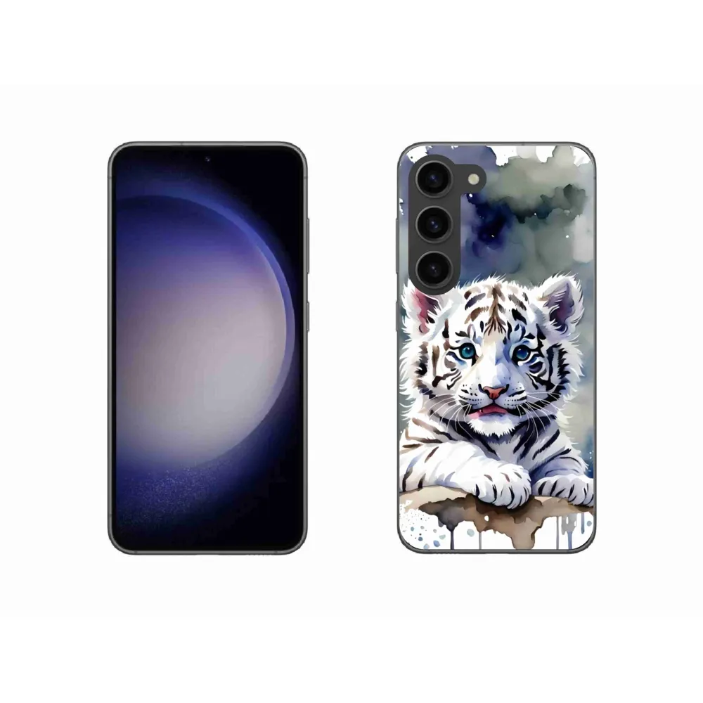 Psie púzdro na Samsung Galaxy S23 5G - mláďa bieleho tigra poskytuje všetky výhody gélových obalov, a to v zaujímavom dizajne.