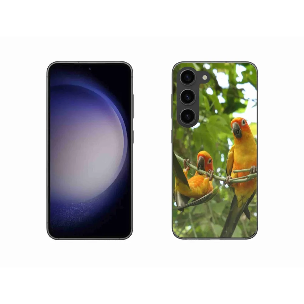 Pružný gélový obal mmCase s obrázkom na Samsung Galaxy S23 5G - papagáje aratingy