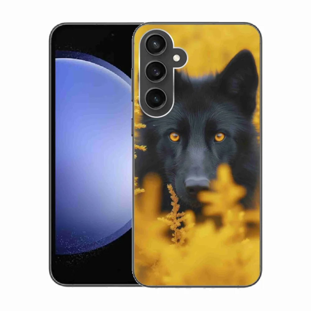 Pružný gélový obal mmCase s obrázkom na Samsung Galaxy S23 FE - čierny vlk 2