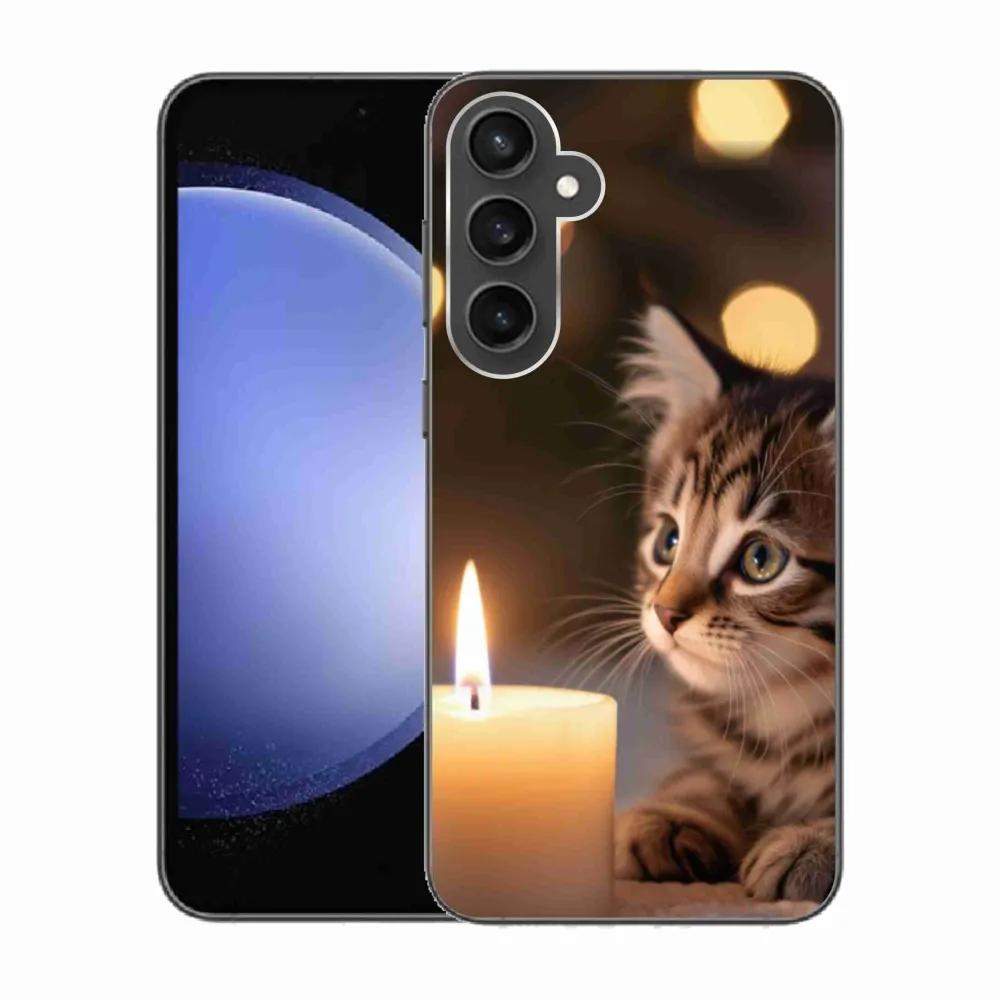 Pružný gélový obal mmCase s obrázkom na Samsung Galaxy S23 FE - mačiatko a sviečka