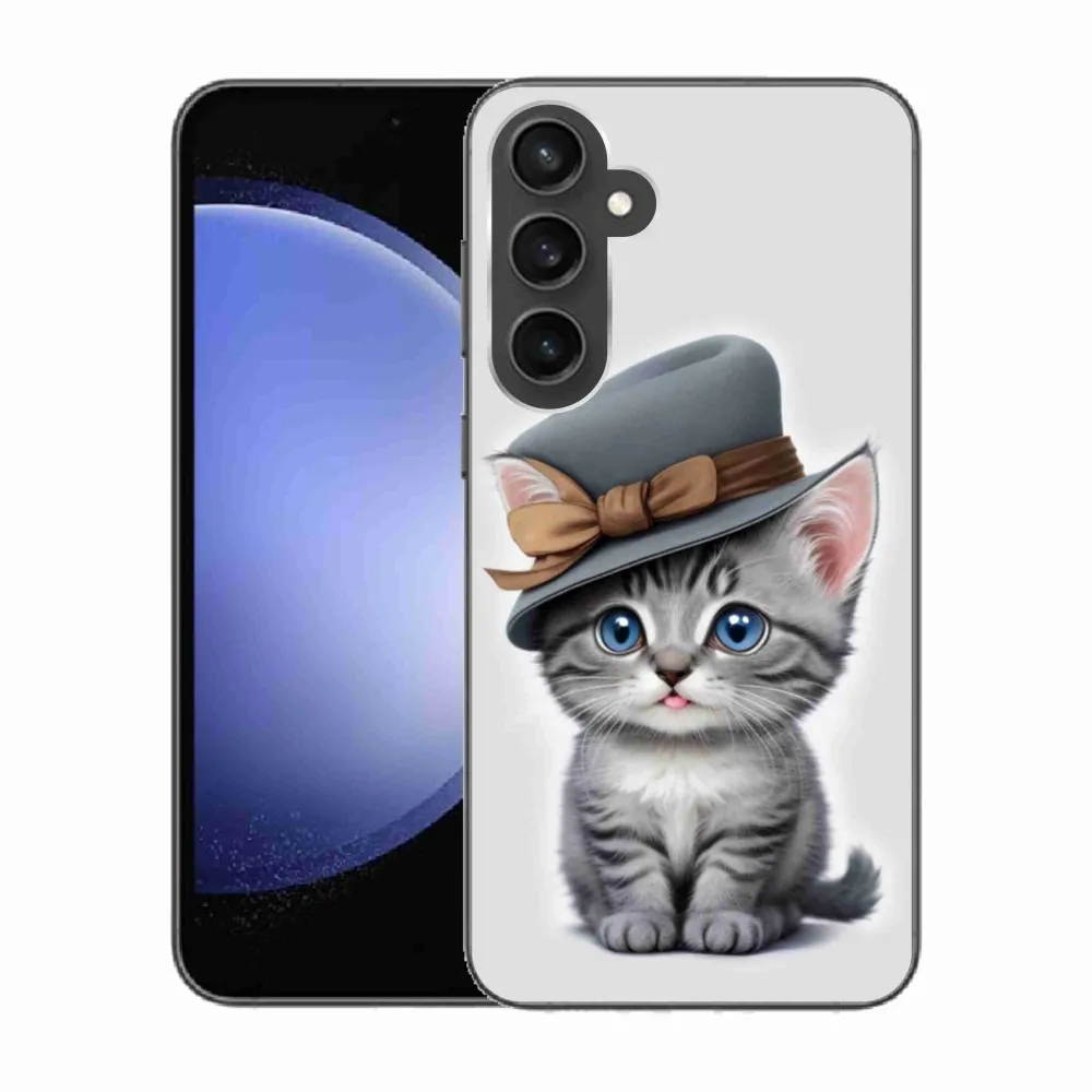 Pružný gélový obal mmCase s obrázkom na Samsung Galaxy S23 FE - mačiatko s klobúkom