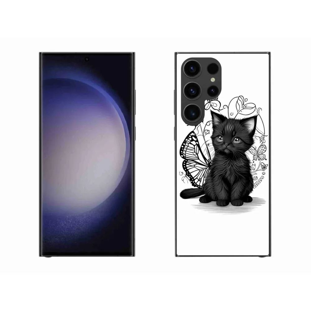 Mačacie púzdro na Samsung Galaxy S23 Ultra 5G - čierne mačiatko poskytuje všetky výhody gélových obalov, a to v zaujímavom dizajne.