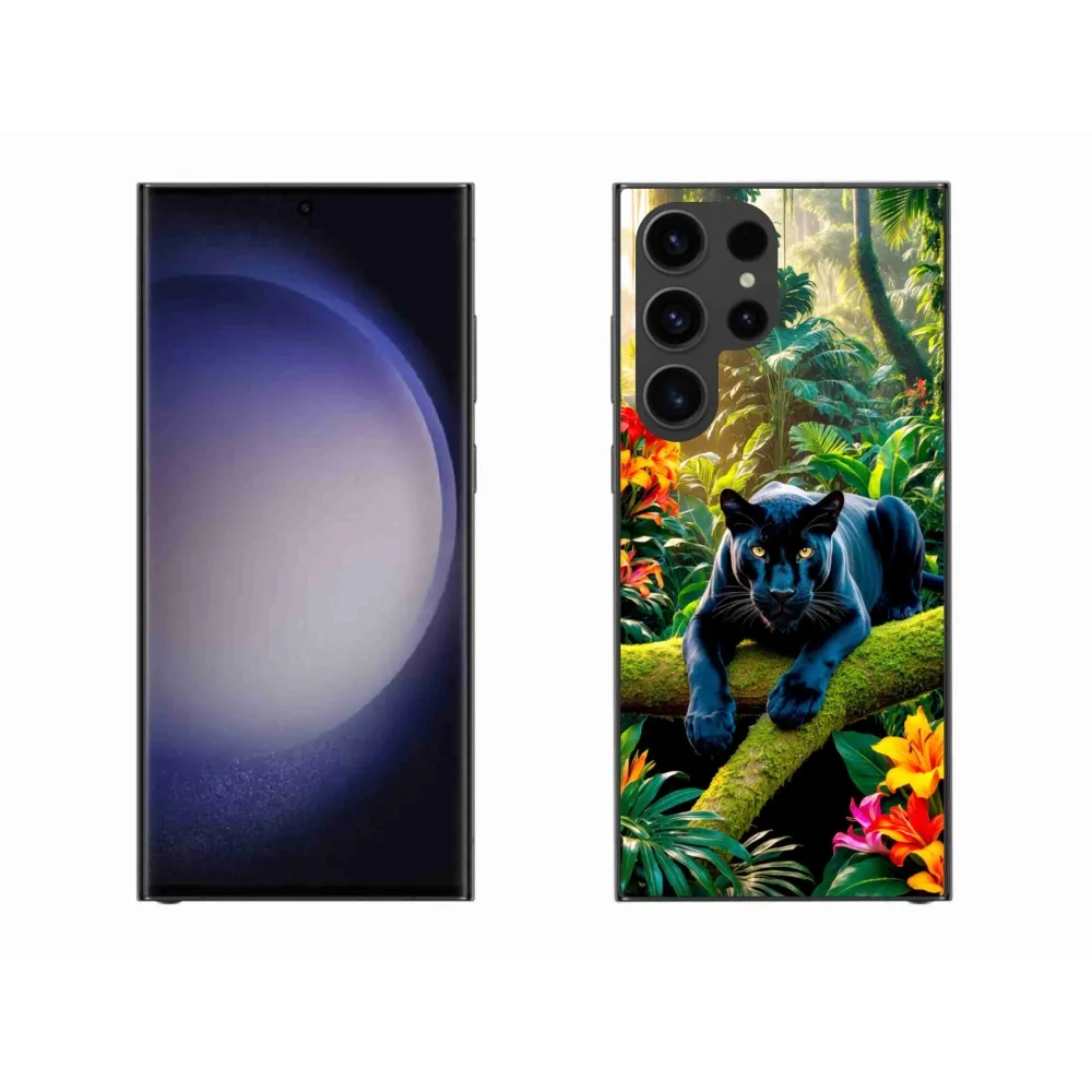 Zvieracie puzdro na Samsung Galaxy S23 Ultra 5G - čierny panter v džungli poskytuje všetky výhody gélových obalov, a to v zaujímavom dizajne.