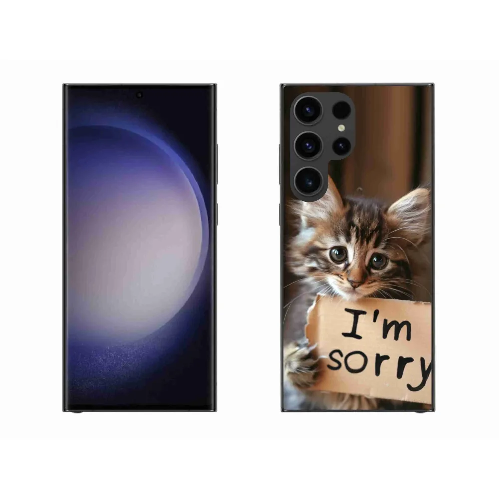 Pružný gélový obal mmCase s obrázkom na Samsung Galaxy S23 Ultra 5G - mačacie ospravedlnenie