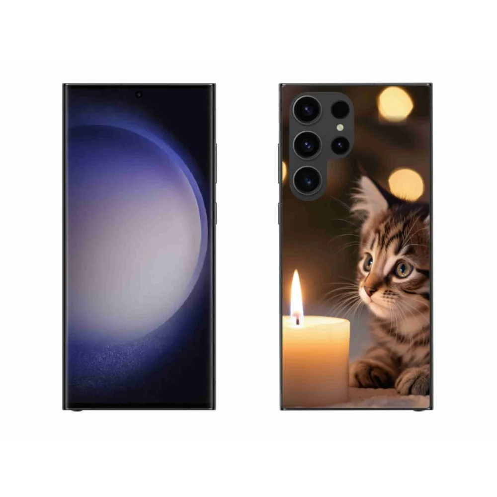 Pružný gélový obal mmCase s obrázkom na Samsung Galaxy S23 Ultra 5G - mačiatko a sviečka
