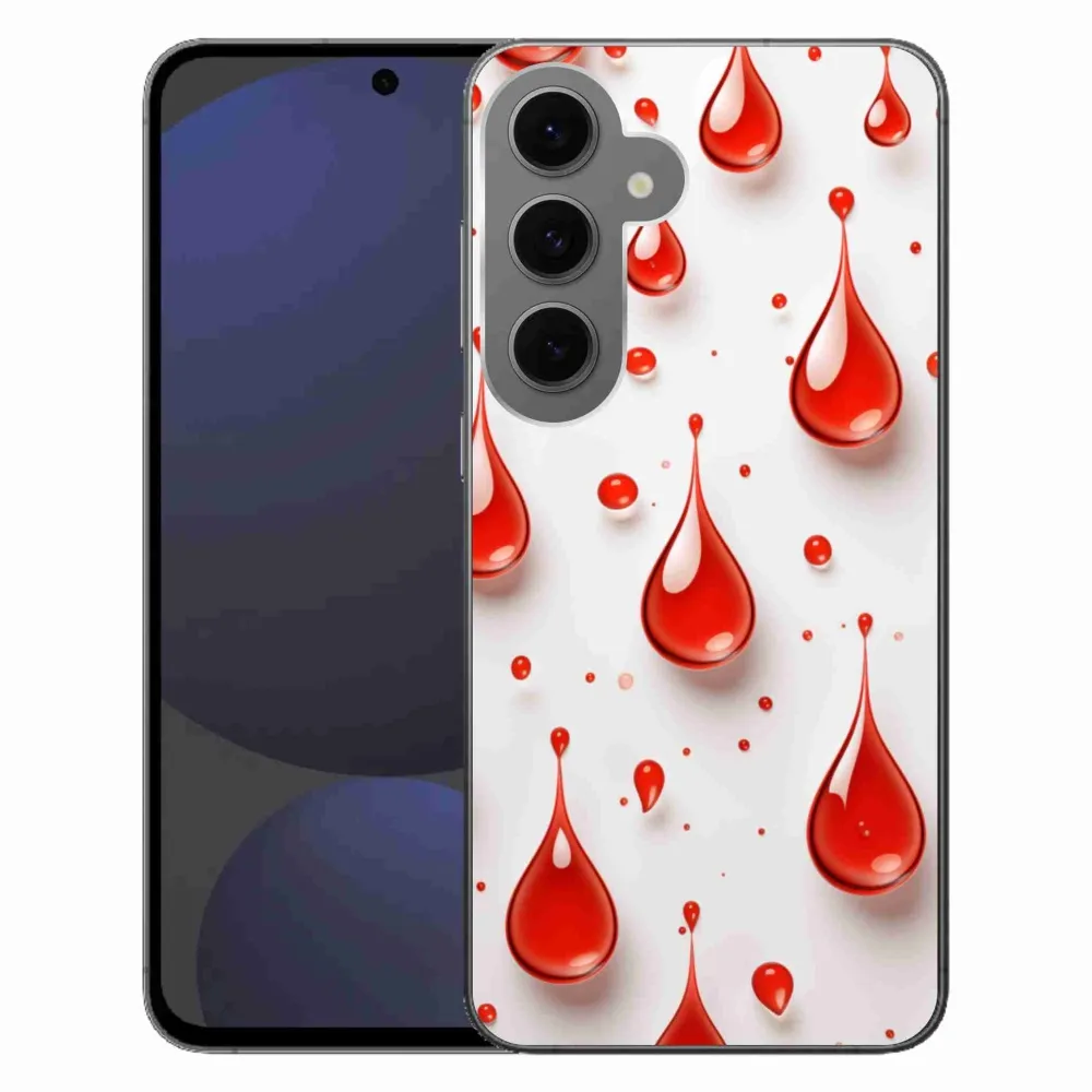 Puzdro na Samsung Galaxy S24 FE - červené kvapky poskytuje všetky výhody gélových obalov, a to v zaujímavom dizajne.