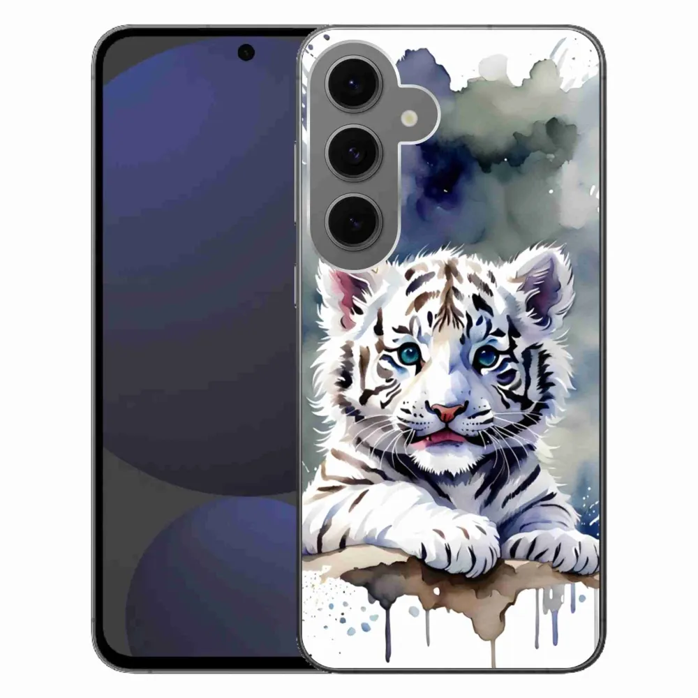 Psie púzdro na Samsung Galaxy S24 FE - mláďa bieleho tigra poskytuje všetky výhody gélových obalov, a to v zaujímavom dizajne.