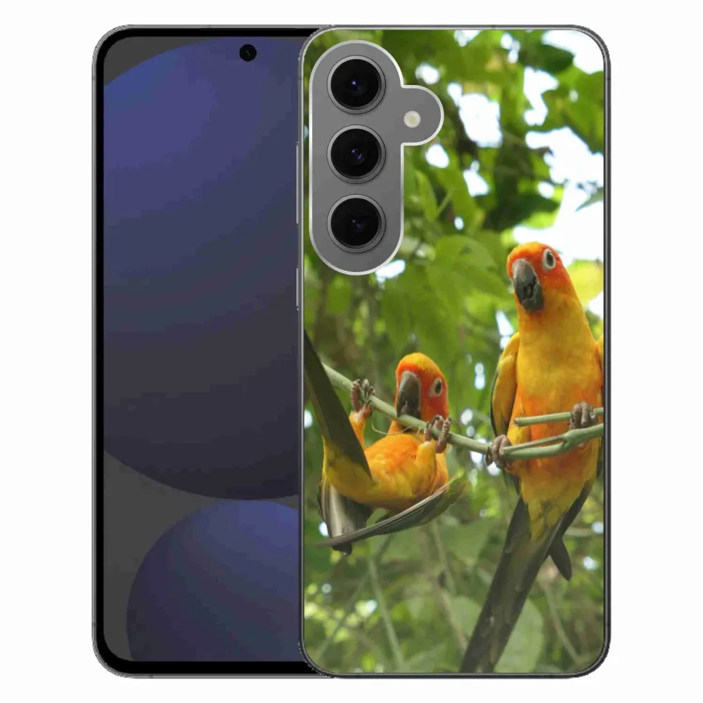 Zvieracie puzdro na Samsung Galaxy S24 FE - papagáje aratingy poskytuje všetky výhody gélových krytov, a to v zaujímavom dizajne.