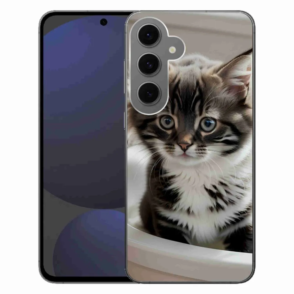 Mačacie púzdro na Samsung Galaxy S24 FE - zvedavé mačiatko poskytuje všetky výhody gélových obalov, a to v zaujímavom dizajne.
