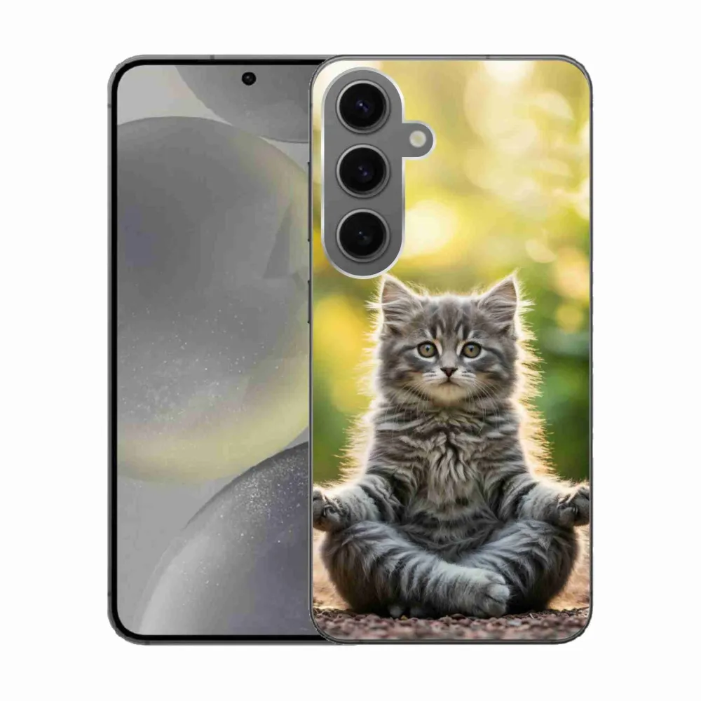 Mačacie púzdro na Samsung Galaxy S24 - meditujúce mačiatko poskytuje všetky výhody gélových obalov, a to v zaujímavom dizajne.