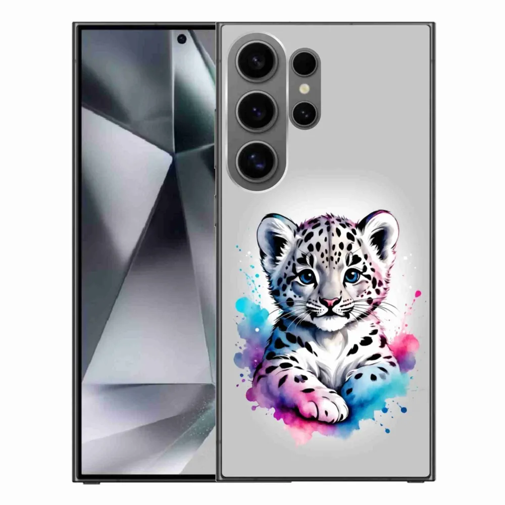 Mačacie púzdro na Samsung Galaxy S24 Ultra - leopardie mláďa poskytuje všetky výhody gélových obalov, a to v zaujímavom dizajne.