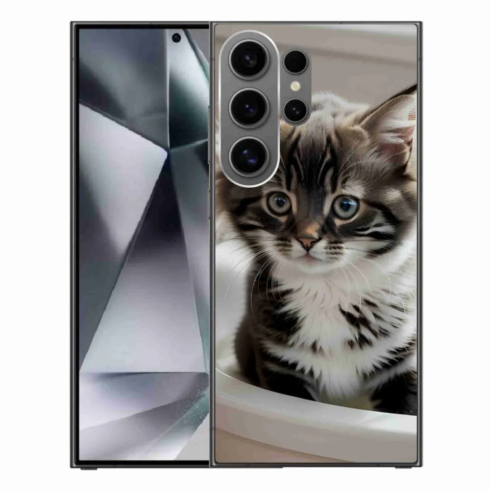 Mačacie púzdro na Samsung Galaxy S24 Ultra - zvedavé mačiatko poskytuje všetky výhody gélových obalov, a to v zaujímavom dizajne.