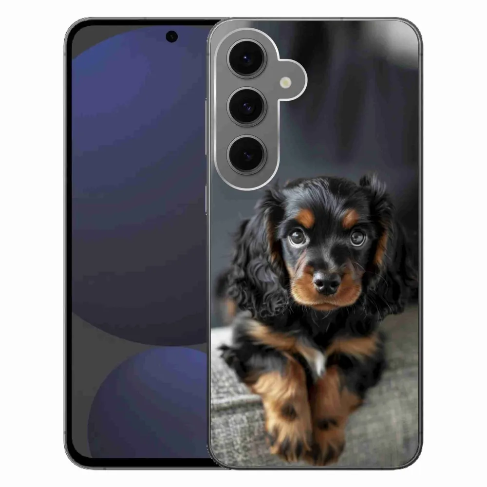 Psie púzdro na Samsung Galaxy S24 FE - roztomilý dlhosrstý jazvečík poskytuje všetky výhody gélových obalov, a to v zaujímavom dizajne.