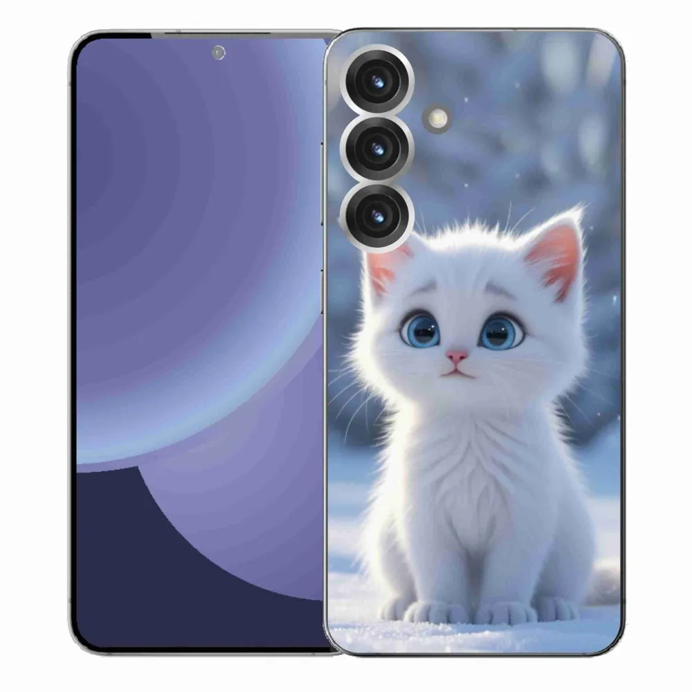 Pružný glový obal mmCase s obrázkom na Samsung Galaxy S25+ - biele mačiatko 3