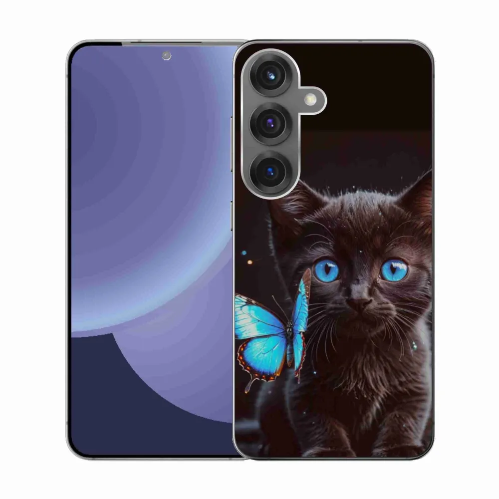 Pružný gélový obal mmCase s obrázkom na Samsung Galaxy S25 - čierne mačiatko 3