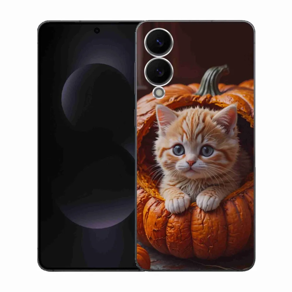 Pružný gélový obal mmCase s obrázkom na Samsung Galaxy S25 Edge - mačiatko a tekvica 2