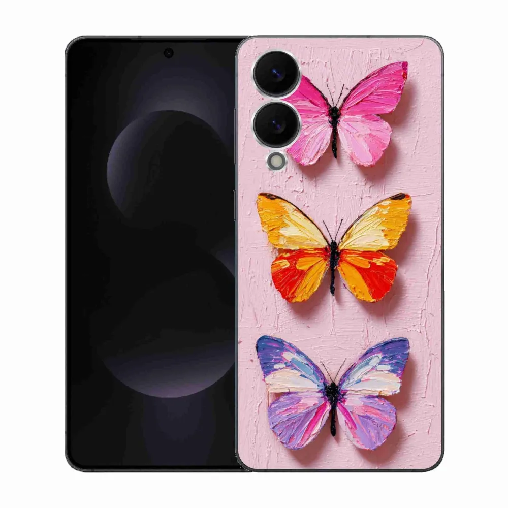 Zvieracie puzdro na Samsung Galaxy S25 Edge - motýlia trojica poskytuje všetky výhody gélových obalov, a to v zaujímavom dizajne.
